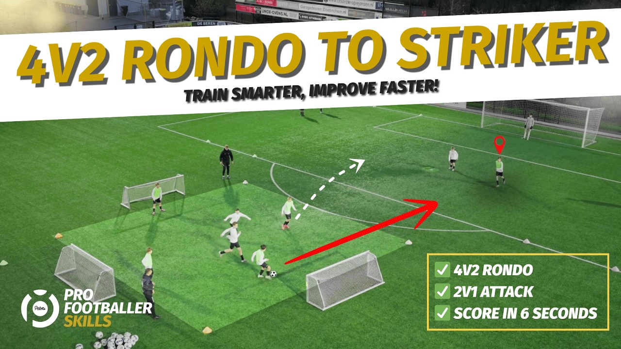- Communicatie & Omschakeling: Zodra de bal naar de spits gaat, moet één speler uit de rondo direct de knop omzetten. Van passend rondspelen naar een volle sprint om bij te sluiten voor de 2-tegen-1 situatie.