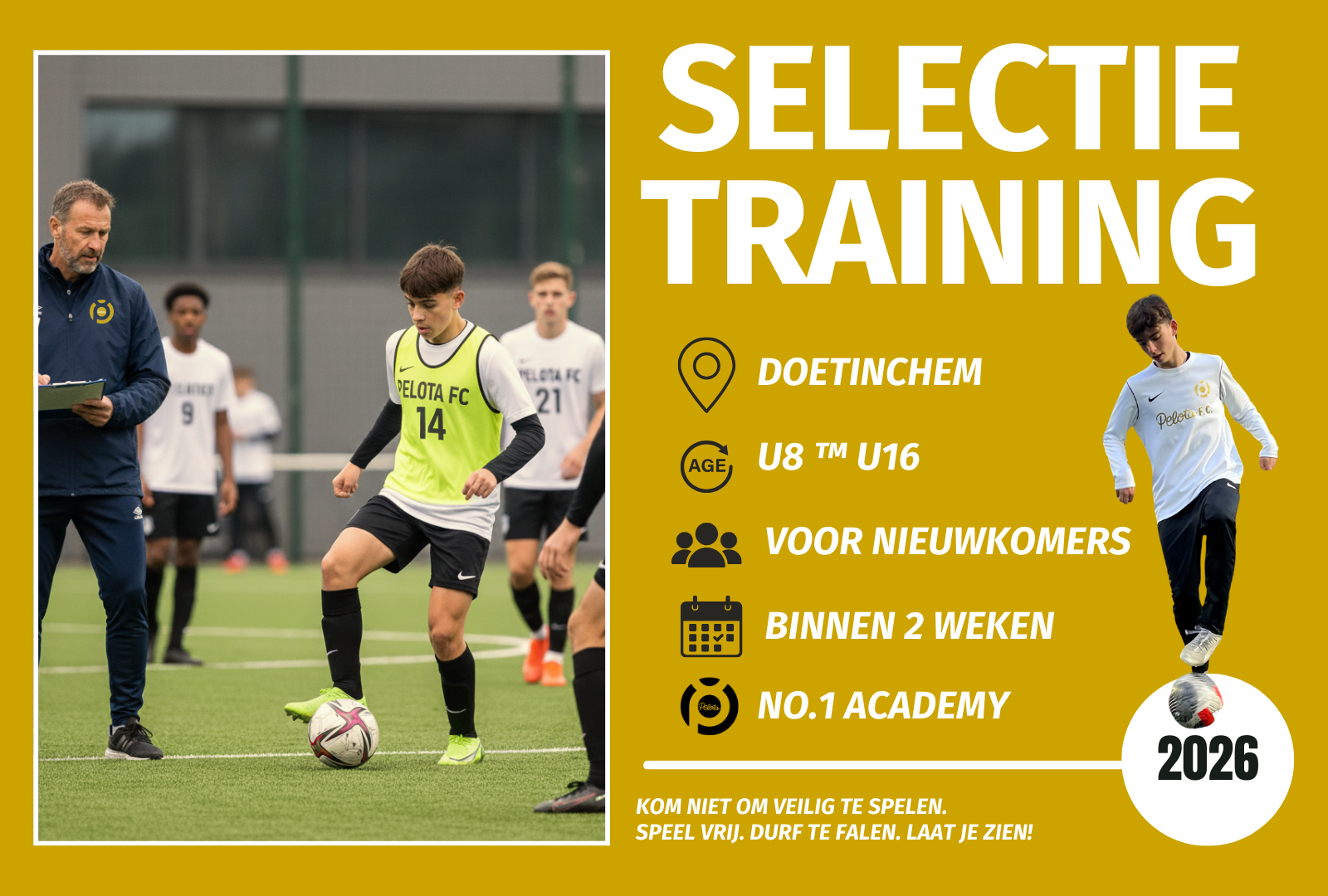 Kom je via onze selectietraining bij Pelota te voetballen, dan zit je goed. Hou er rekening mee dat je voetbalniveau alleen nog maar beter wordt. Pelota's uitdagende techniektrainingen en hoge intensiteit van trainen zorgen voor een snelle groei. Bij Pelota staat talentontwikkeling voorop in een leuke en leerzame voetbalomgeving!